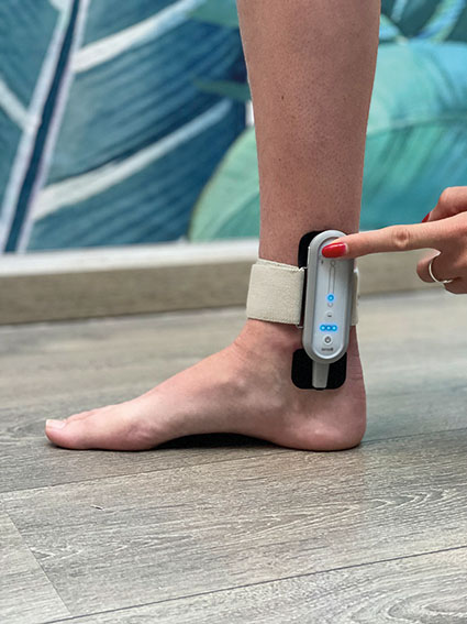 Ce dispositif médical utilise la technique de neurostimulation électrique transmutante (TENS) par stimulation du nerf tibial postérieur.